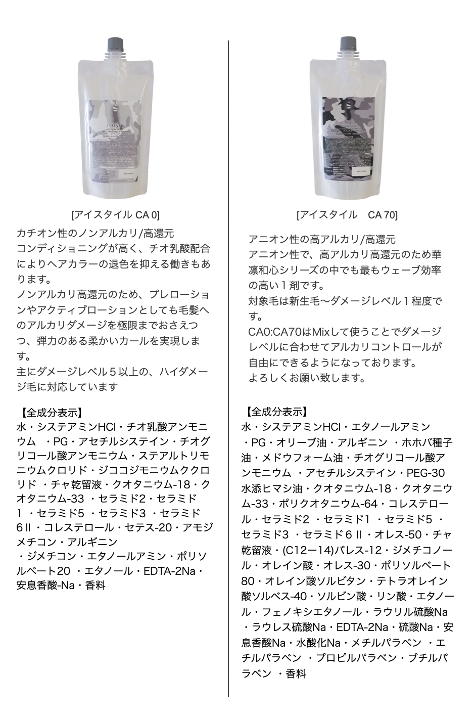 また、アイスタイルCA0とミックスすることで、ダメージレベルに合わせてアルカリの強さを自由にコントロールできます。