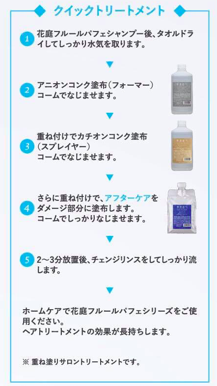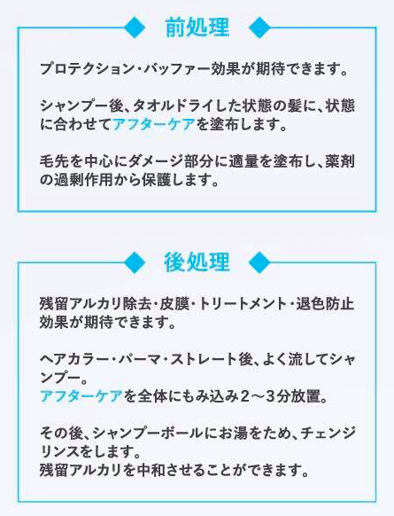 アルカリ除去・被膜形成・キューティクル補修 被膜形成力があり、キューティクルのひび割れ等を防ぎ、毛髪表面をなめらかにします。 また、リピジュア_配合により毛髪表面にナノスケールのラメラ層を形成し、再疎水化によるダメージ修復、ヘアカラーの色落ち防止など優れた機能を発揮します。 水分・油分の保持性が高まり毛髪の感想を防ぎます。