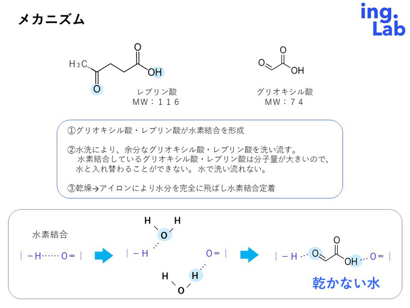 ハイドペアは毛髪内部に多量に存在する水素結合つ着目し、水素結合をつなぎ、乾かない水で結合水を再生し、「うるおい」「つや」「おさまり」を再現します。 G-テクスチャー うるツル/グリオキシル酸