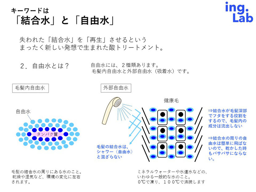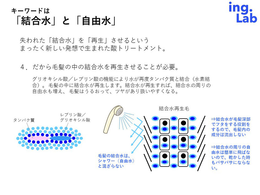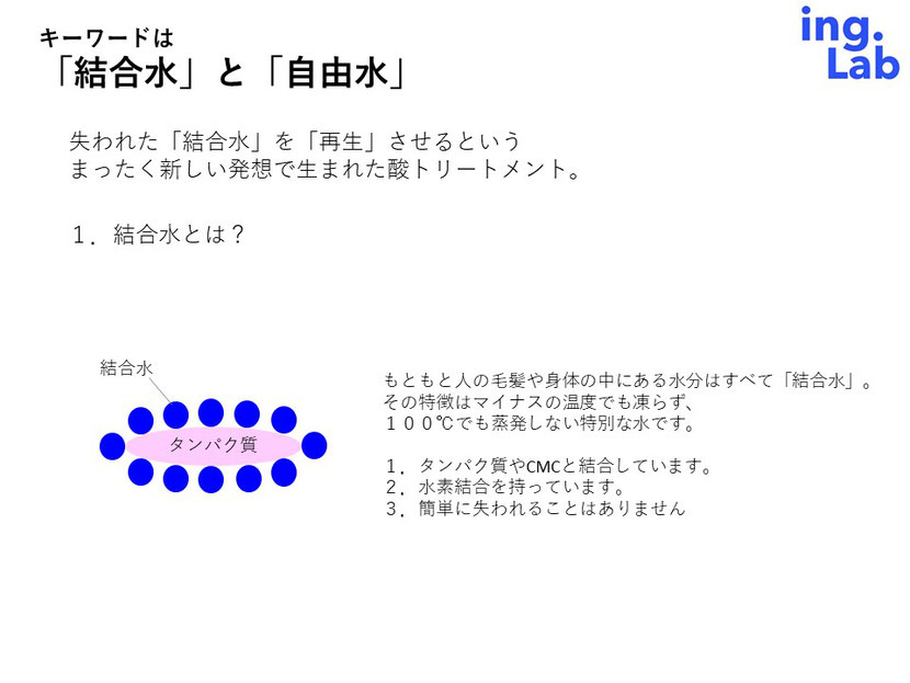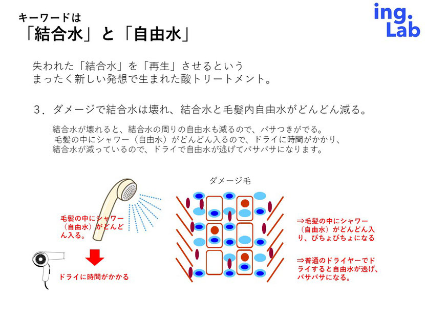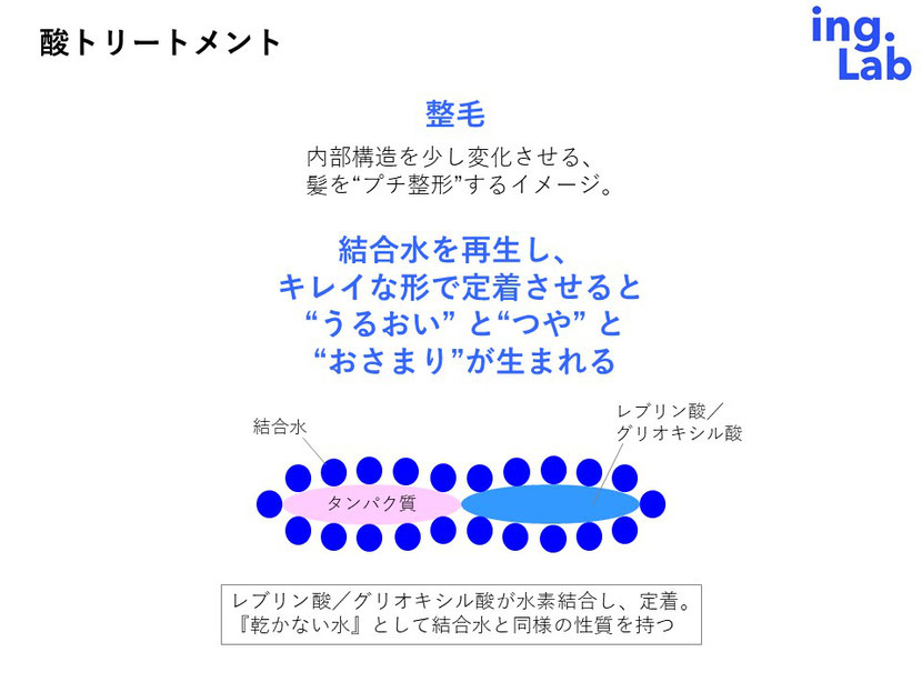 ハイドペアは毛髪内部に多量に存在する水素結合つ着目し、水素結合をつなぎ、乾かない水で結合水を再生し、「うるおい」「つや」「おさまり」を再現します。