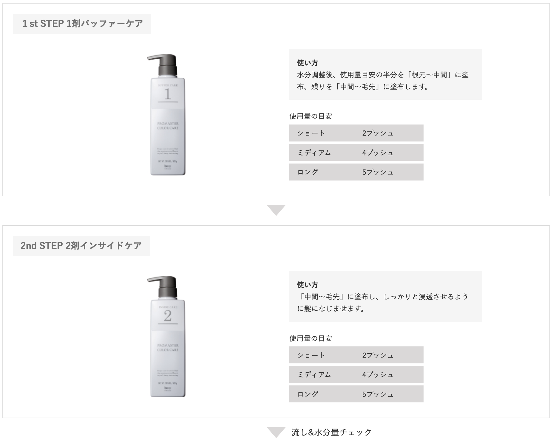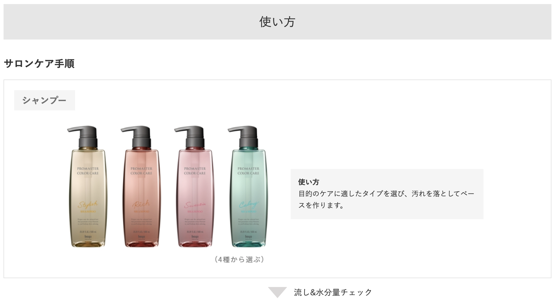 髪の悩みに応じてケアする、3ステップのサロンケアアイテム。