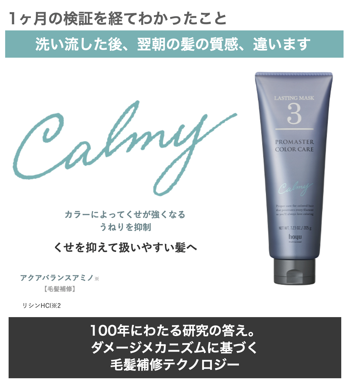 PROMASTER COLOR CAREはカラーダメージを補修し、”今と未来”の美しい髪を実現するための素材を育みます。
