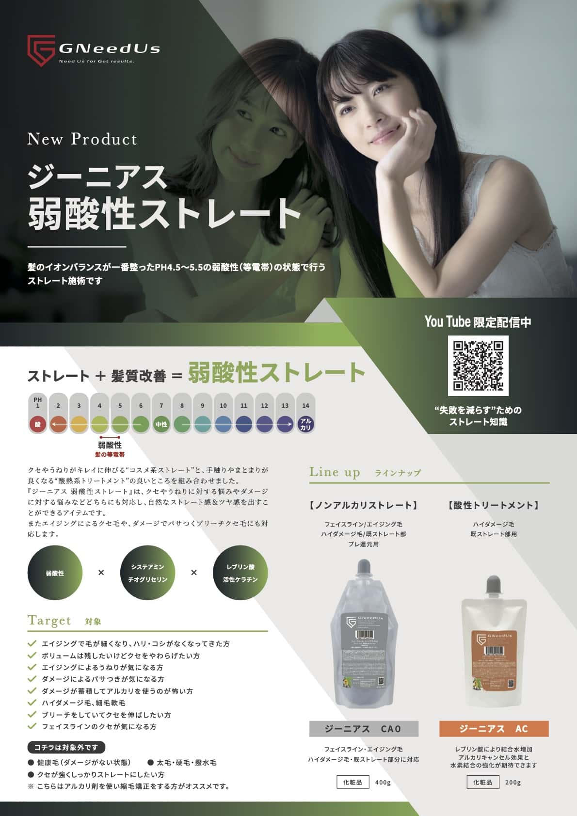 ジーニアスは、独自のアルゴリズム(方法)でお客さま1人1人の髪質やクセの種類に合わせて数十通りの薬剤組み合わせの中からアイテムを選定します。 また加齢による髪の悩みにも対応し好きなヘアデザインを楽しんでいただけます。 お客さまのために徹底的にこだわりたいというサロンさまに最適です。