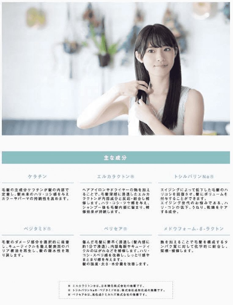 髪の主成分『ケラチン』配合の毛髪強化剤