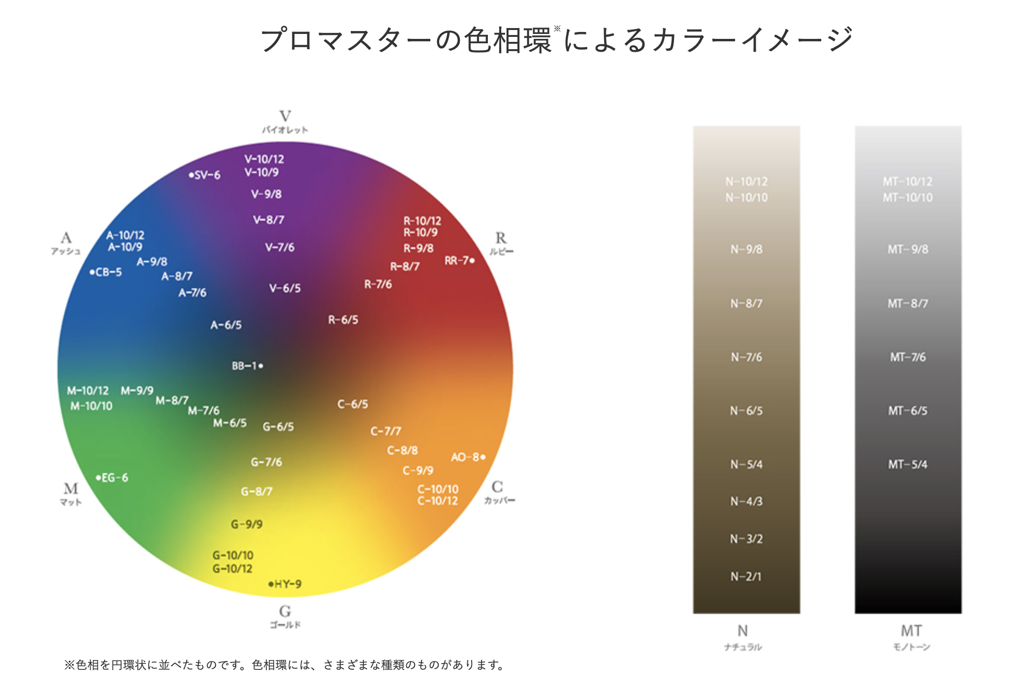 ナチュラルとモノト ーンは、共に色相環の中心に配置しています。