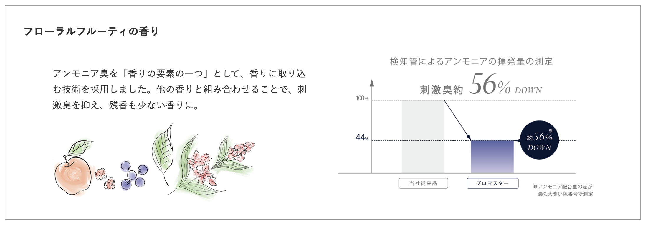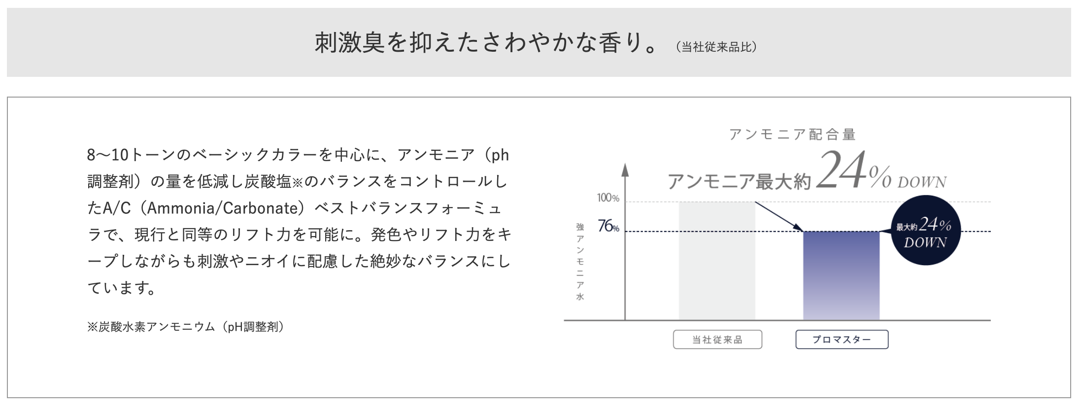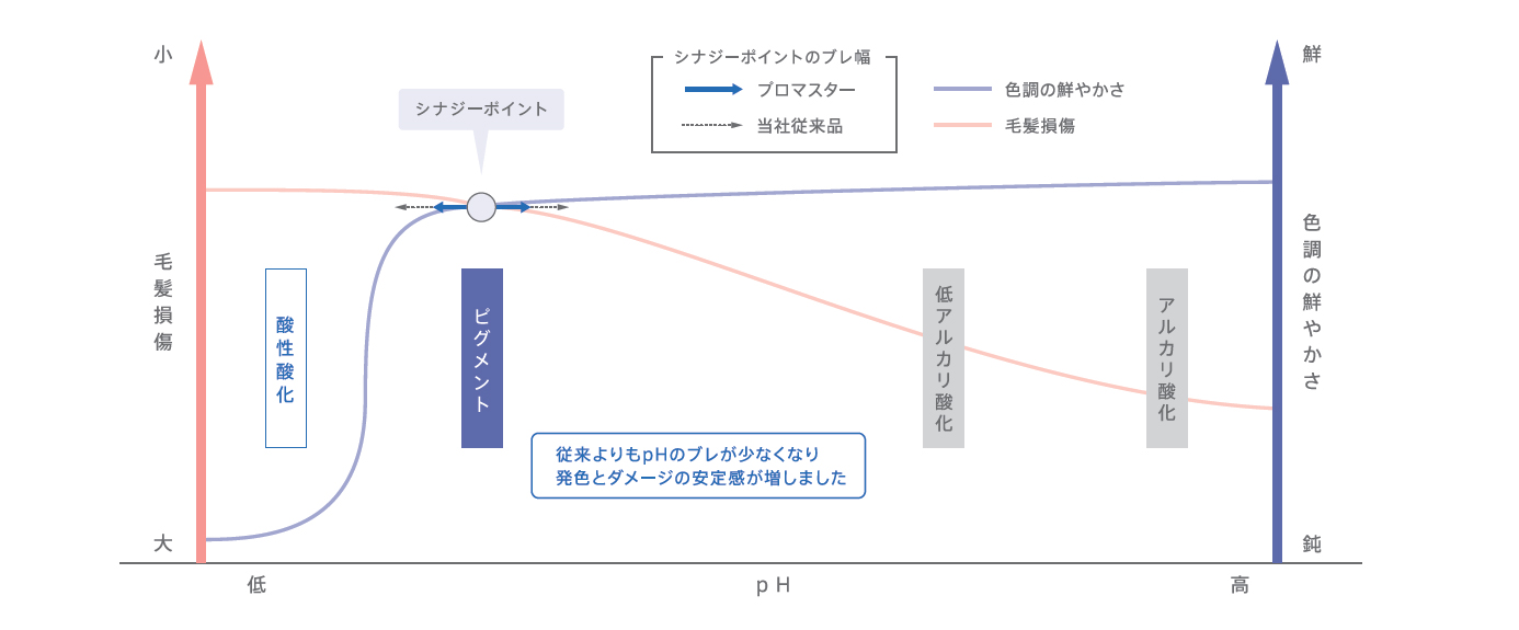 鮮やかな発色と優れたコンディションを高いレベルで実現するために、最滴なpHに設定しています( シナジーポイント) 。