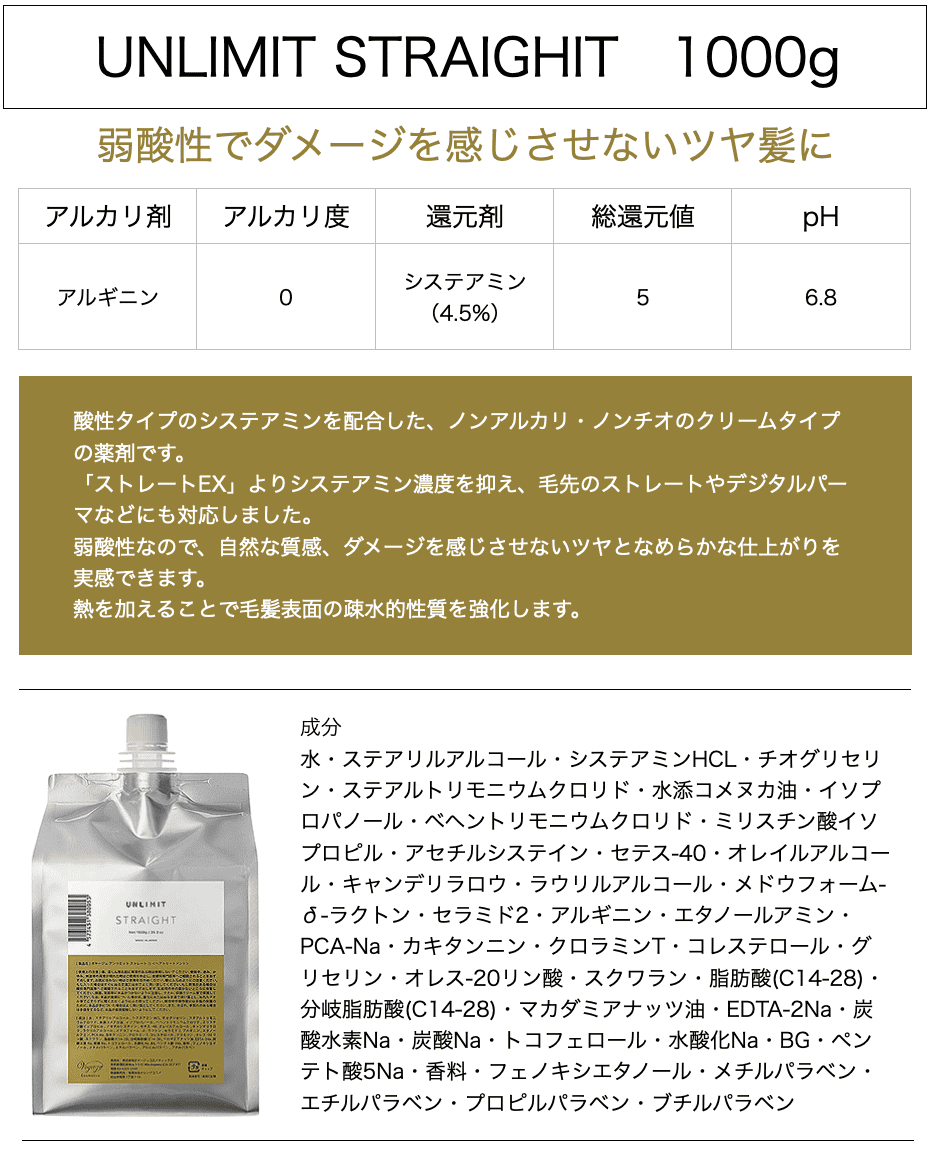 アンリミットカールはノンアルカリで、しかも髪と同じ成分(アミノ酸、ヒアルロン酸、タンパク質)の薬剤(化粧品)を使用し、温度は40〜60℃と低温でかけるため、髪が硬くならず自然で柔らかい質感のある「今までにないナチュラルなパーマスタイル」が楽しめます。 今までパーマで失敗いたことのがある方にも是非オススメできる新発想のパーマです。