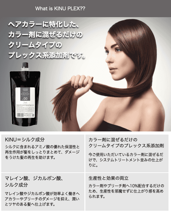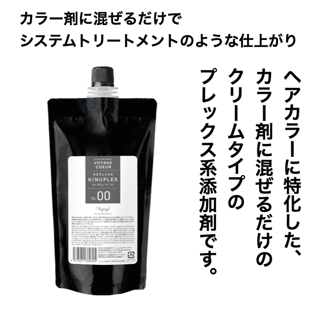 ヘアカラーに特化した、カラー剤に混ぜるだけのクリームタイプのプレックス系添加剤です。