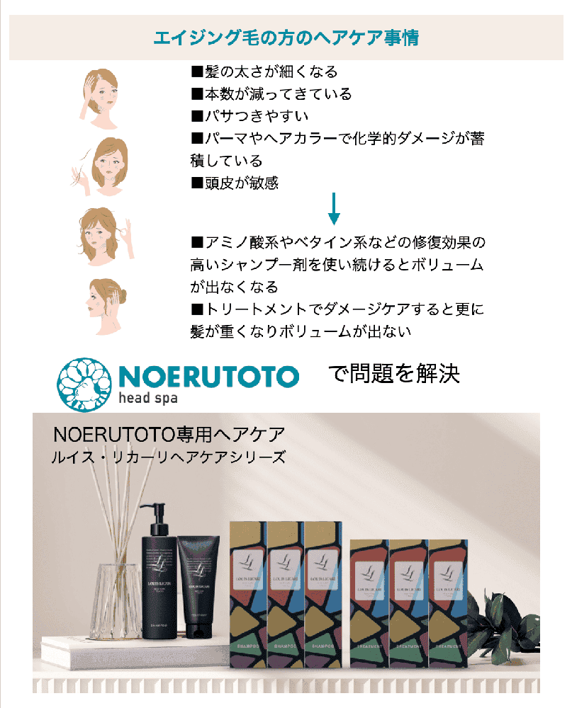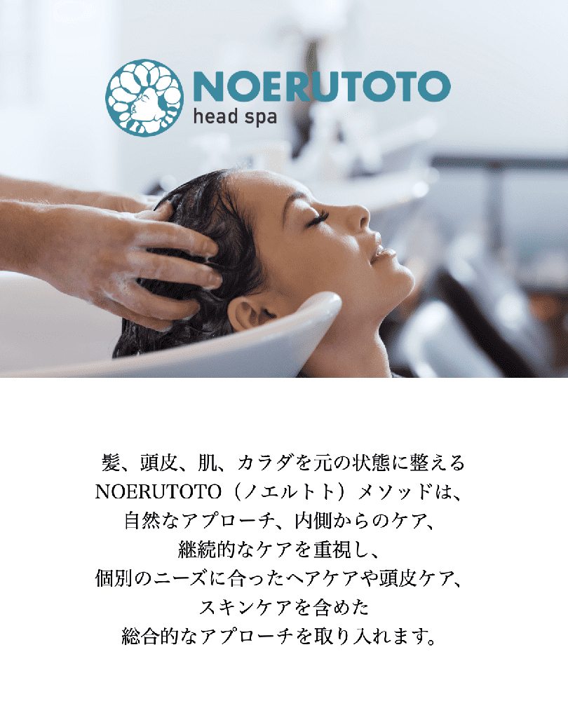 髪、頭皮、肌、カラダを元の状態に整えるNOERUTOTO(ノエルトト)メソッドは、自然なアプローチ、内側からのケア、継続的なケアを重視し、個別のニーズに合ったヘアケアや頭皮ケア、スキンケアを含めた総合的なアプローチを取り入れます
