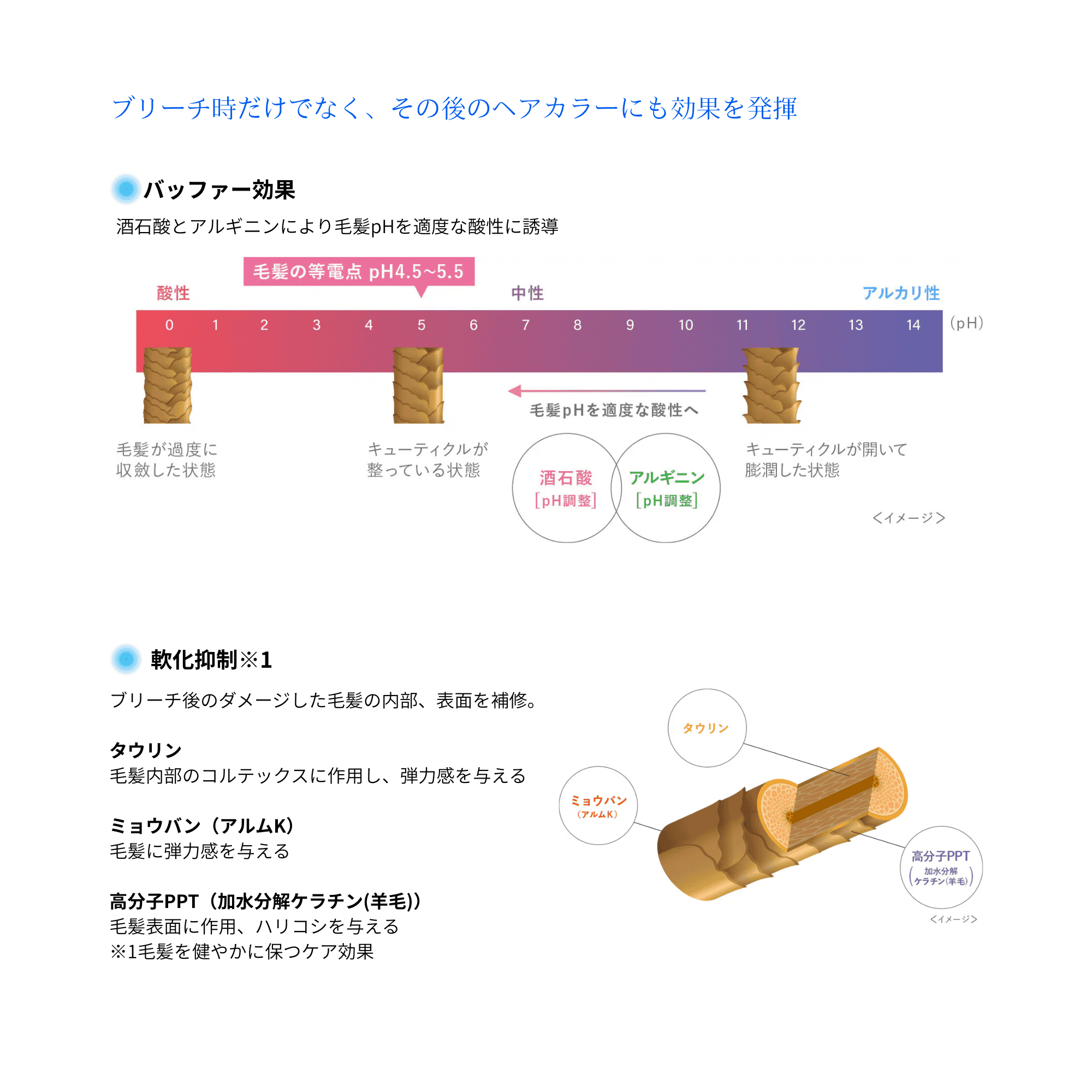 ブリーチ後の毛髪phを ブリーチ後の毛髪に 水道水に含まれる金属イオンを